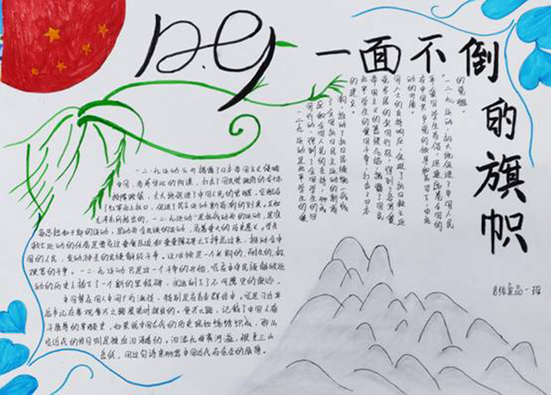 今年是“12.9”爱国运动84周年。现代农业技术系的十二个班级通过办手抄报的形式开展纪念“12·9”运动,旨在加强学生的爱国主义教育,弘扬爱国主义精神,教育学生铭记历史,勿忘国耻,增强民族自豪感。