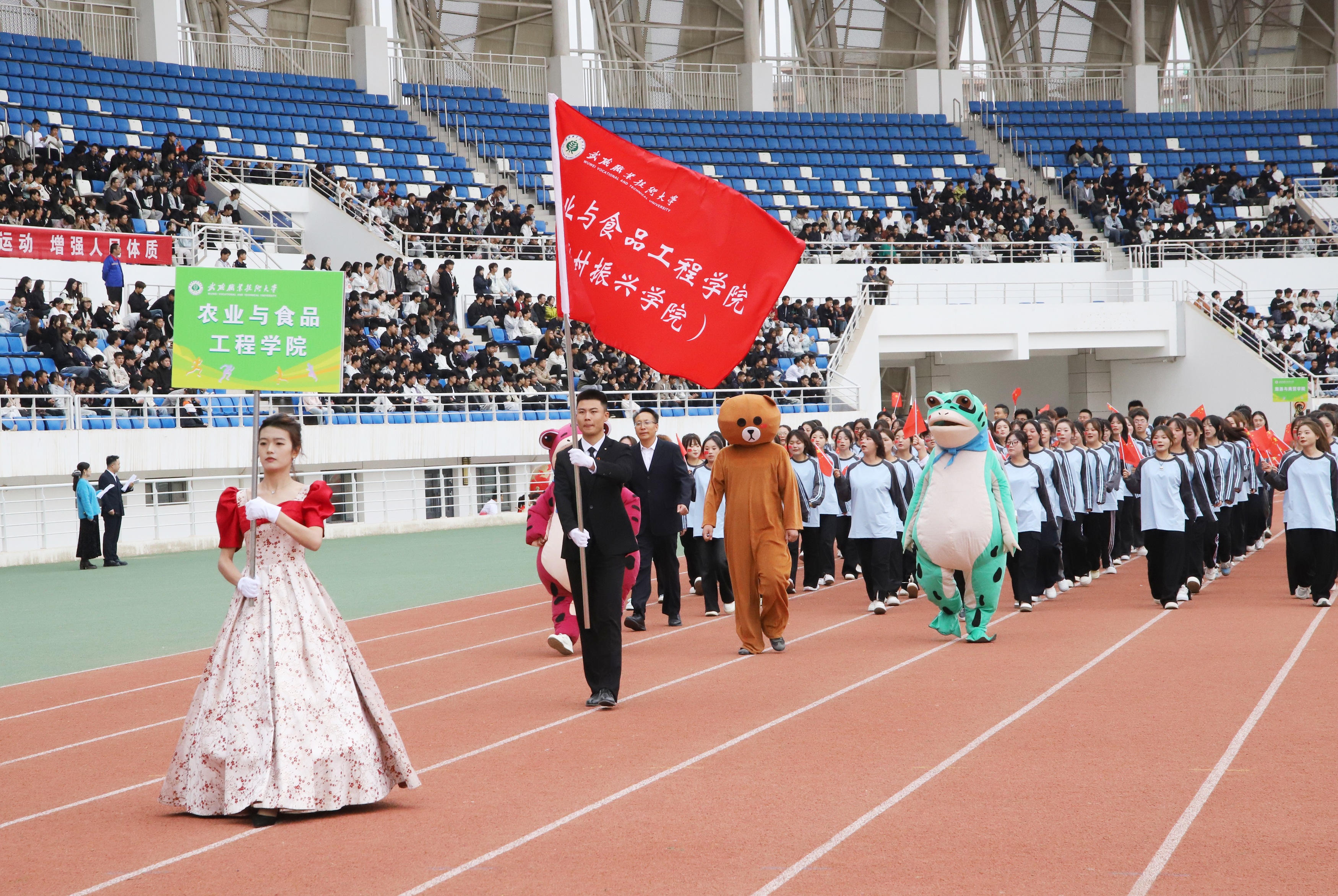 伴随着激昂的《运动员进行曲》,国旗护卫队、彩旗队、裁判员队伍、各学院方阵依次入场,队列步伐整齐有力,口号坚定嘹亮,充分展示了师生良好的精神风貌。