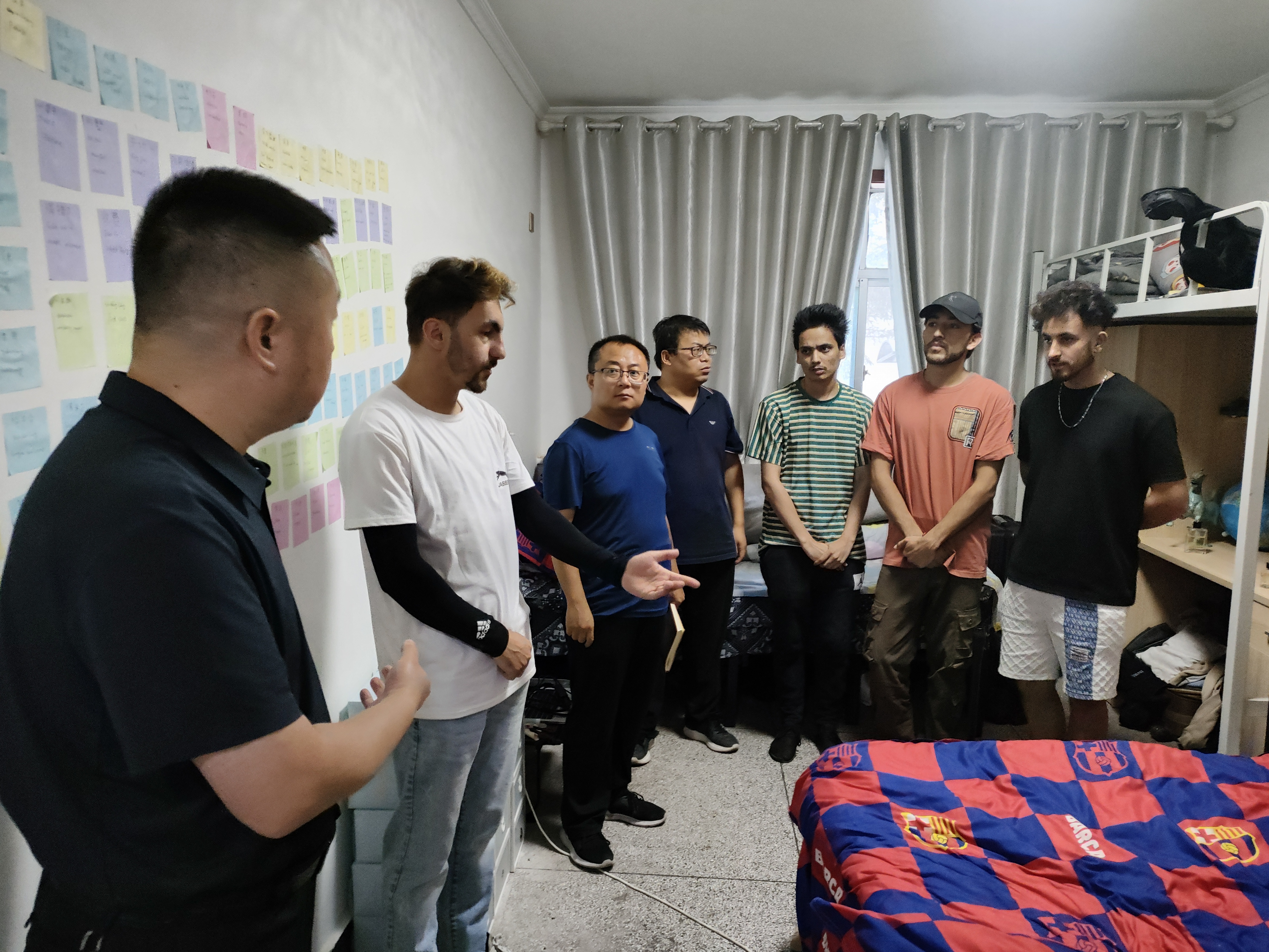 在新学期开学之际,国际合作交流处负责人带领部门全体教师深入留学生宿舍,开展安全卫生专项检查,实地了解留学生开学准备情况。