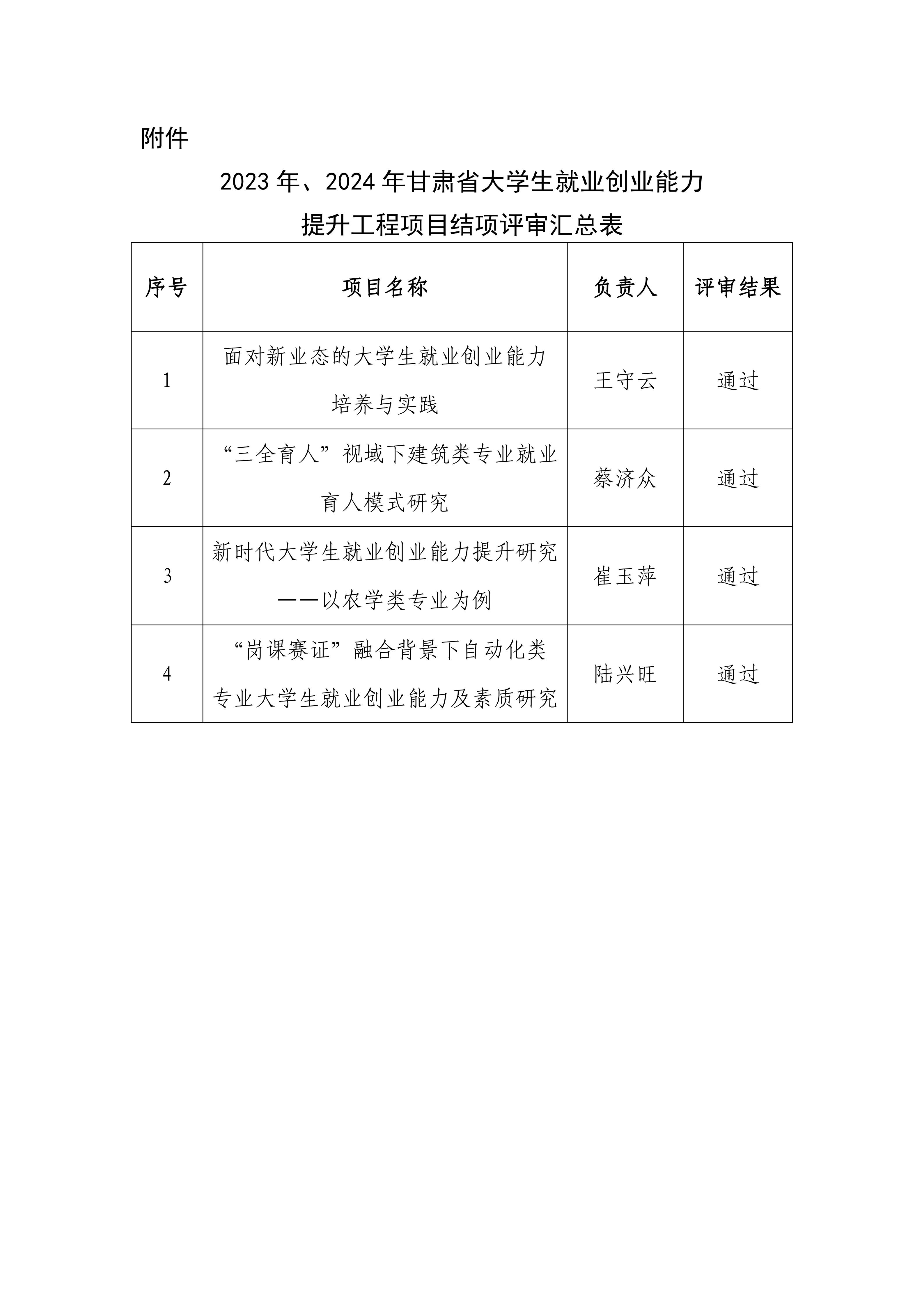 2023年、2024年甘肃省大学生就业创业能力提升工程项目结项评审结果公示