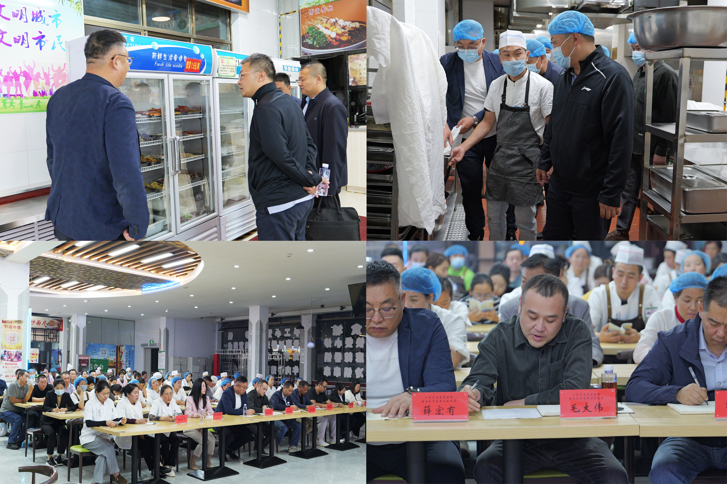 会后,李海军和食品安全管理人员实地检查了餐具清洗区、食品加工区、留样区等重点区域,详细了解了食材储存、加工流程、菜品留样、餐具消毒等环节及食堂整体卫生状况。