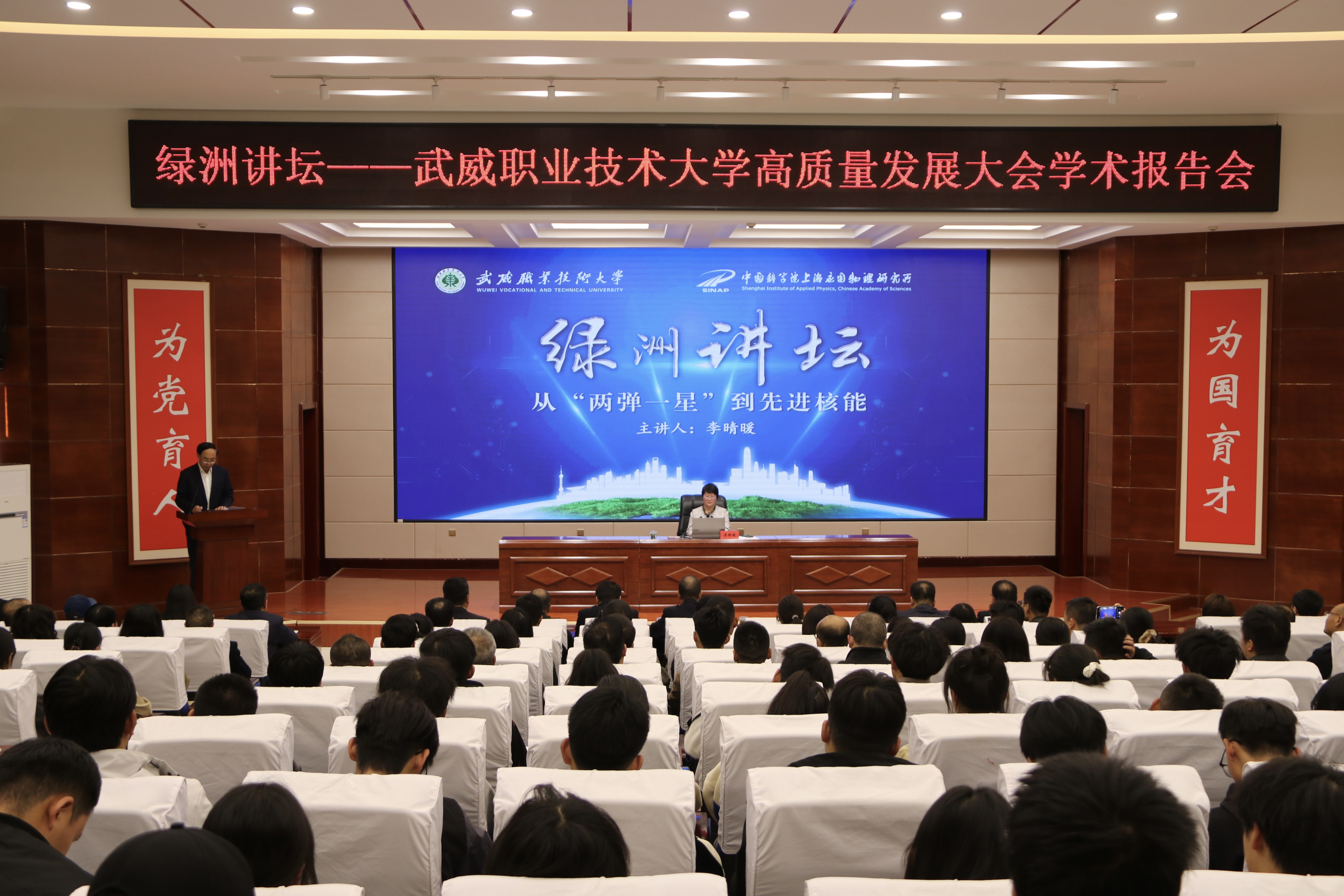 10月12日下午,中国科学院上海应用物理研究所党委书记、副所长李晴暖研究员,受邀做客武威职业技术大学“绿洲讲坛”,以《从“两弹一星”到先进核能》为题,为该校220余名师生代表带来专题学术报告。