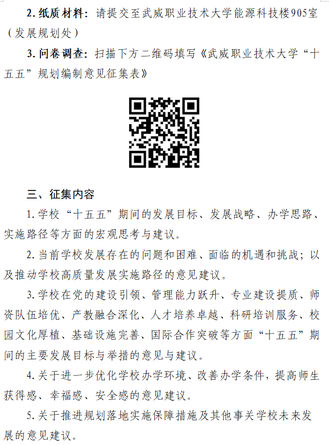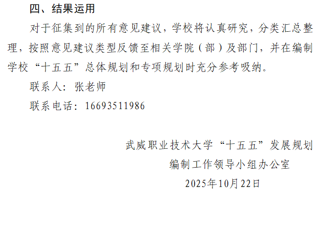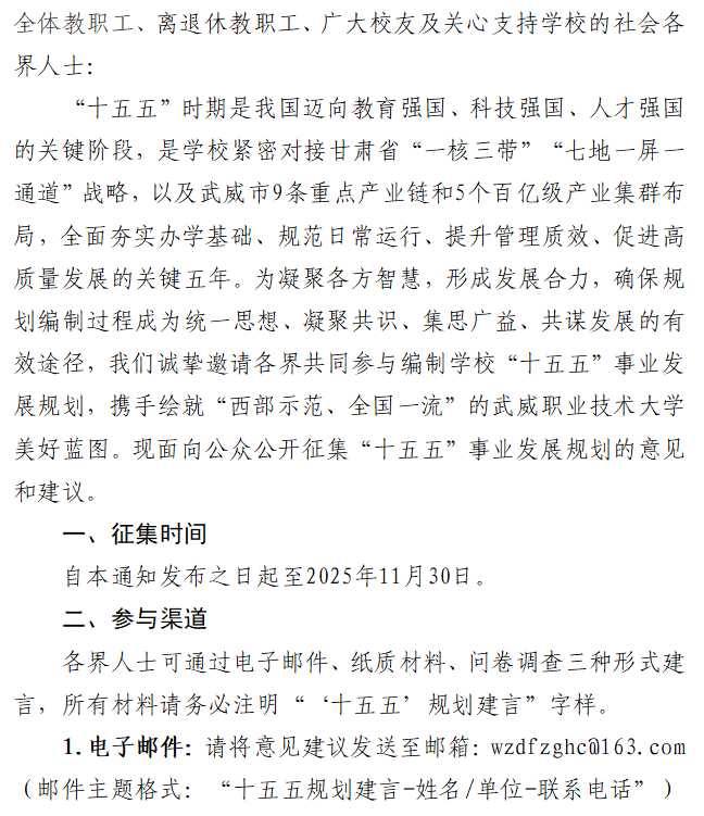 武威职业技术大学关于公开征集“十五五”规划编制意见建议的通知